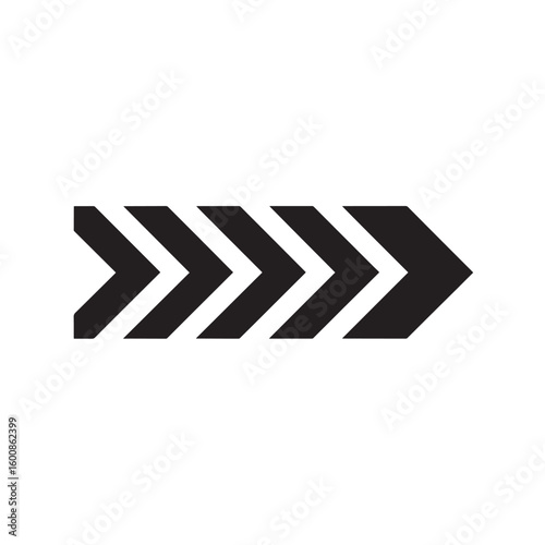 A bold black chevron arrow symbol composed of multiple repeating chevron shapes pointing right isolated on white background