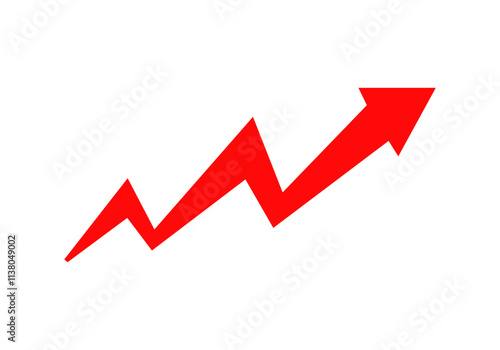 A bold red arrow moving upwards, symbolizing growth, progress, or an increase in trends.
