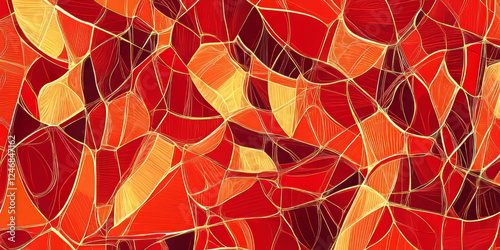 A bold red background with an intricate mosaic pattern that features abstract shapes and lines interwoven together. This high-detail design is perfect for artistic projects, creative visuals, or