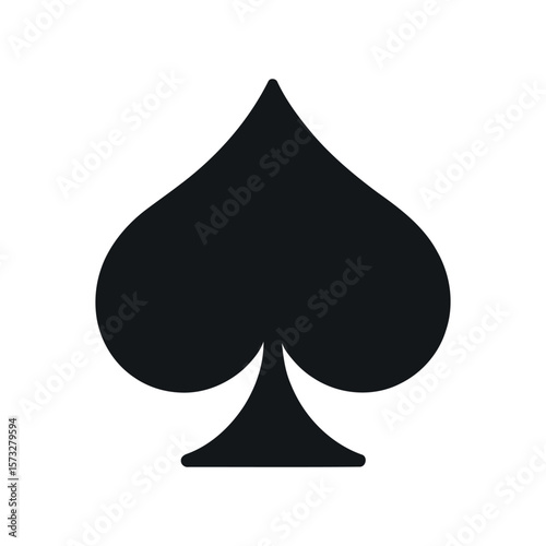 A bold solid black spade playing card symbol is centrally positioned against a stark white background representing a classic suit