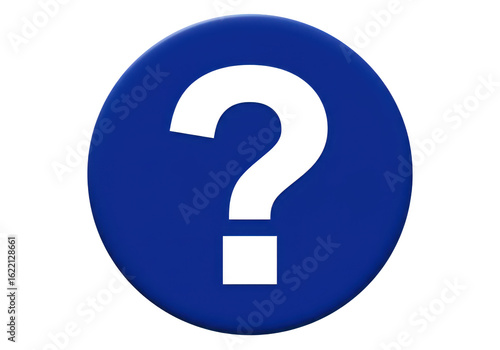 A bold white question mark is prominently displayed on a vibrant blue circular background symbolizing inquiry and the unknown isolated on transparent