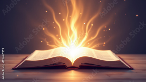 A book emitting a mystical aura with smoke rising from its pages, symbolizing magic or knowledge power.