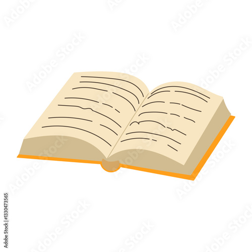 A book is open to a page with a line drawing of a person. The book is yellow and orange