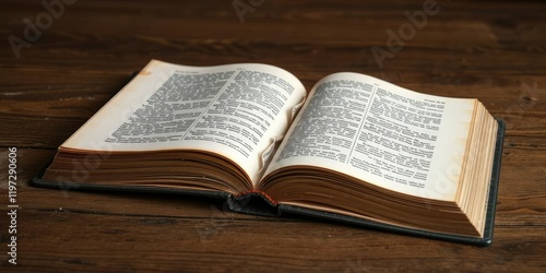 A book with a broken binding and torn pages open on the table, old, broken, worn