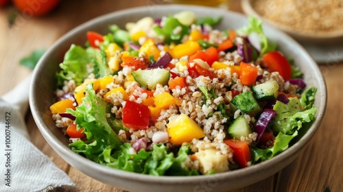 A bowl of salad with a variety of vegetables including lettuce, tomatoes