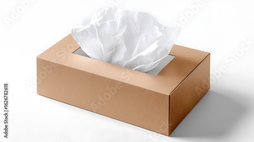 A box with tissue paper mockup on a white surface, perfect for packaging design presentations. .