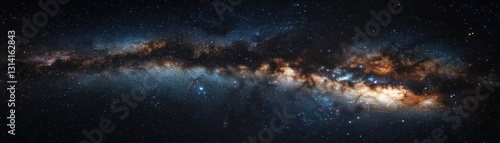 A breathtaking aerial view of a vibrant galaxy, showcasing swirling clouds of colorful nebulae and a star-filled sky, twinkling with countless stars against a deep cosmic backdrop.