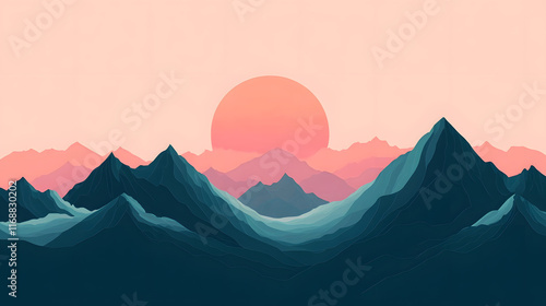 A Breathtaking and Harmonious Minimalist Mountain Landscape Showcasing Sharp Peaks Under a Sunset Color Gradient