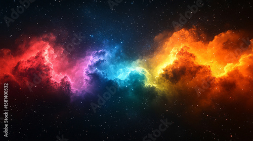 A breathtaking meteor streaks across a vibrant night sky, radiating colorful light rays. Aerial view enhances the cosmic wonder. A stunning blend of celestial energy with space for text on the side.