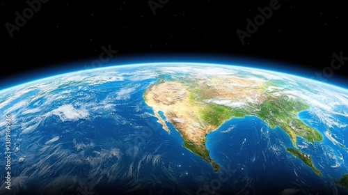 A breathtaking view of Earth from space, showcasing vast landscapes and geographical features, highlighting the beauty of our planet.