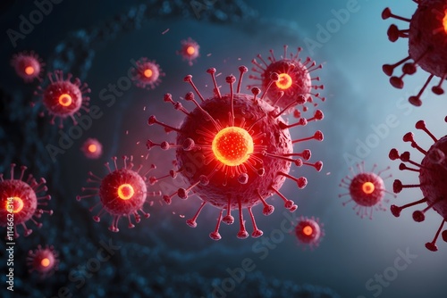 a breathtakingly realistic and vibrant cinematic photograph of intricately detailed illustrations of nanorobots, microscopic in size, swarmingly surrounding and infiltrating cancer cells, with precisi
