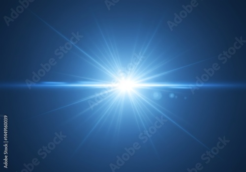 A bright light emitting a radiant glow with horizontal lens flare on a dark blue gradient background