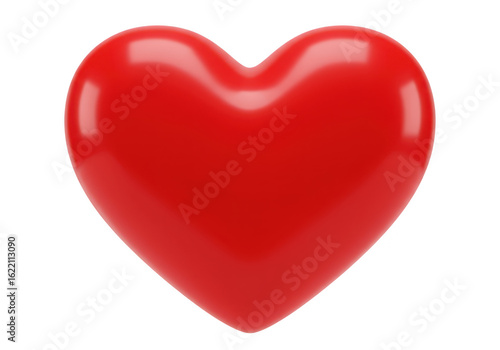 A bright shiny red heart symbol with a smooth glossy surface is presented centrally against a clean transparent background representing love and