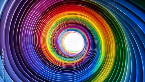 A bright spiral rainbow tunnel; abstract rainbow swirl; a multicolor rainbow swirl of a tunnel; whimsical rainbow spiral pattern of a tunnel; colorful loop