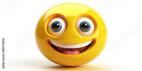 A bright yellow emoticon with a broad, cheerful grin and wide, sparkling eyes, conveying happiness, optimism, and