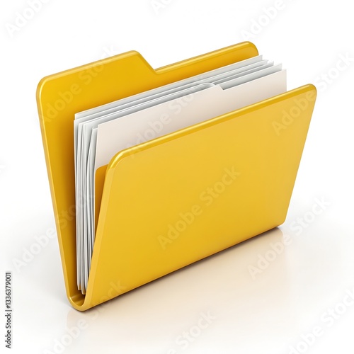 A Bright Yellow File Folder Brimming With Important Documents, Ready To Safeguard Valuable Information And Memories, Rendered In A Clean, Glossy 3d Style