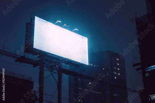 A brightly lit billboard in the heart of the city at night, ideal for use in urban-themed projects