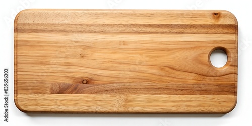 A brown rectangular wooden cutting board with a natural wood grain texture isolated on a white background