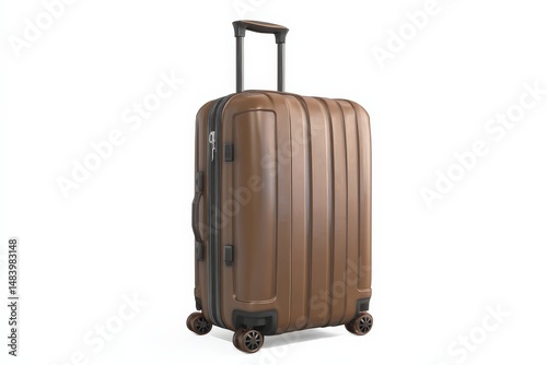 A brown suitcase with a retractable handle and wheels, ready for travel.