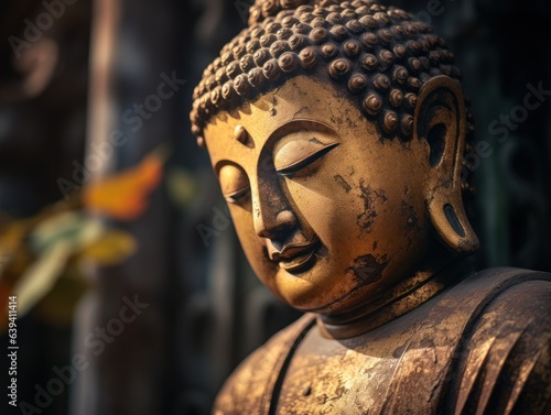 A buddha statue with its eyes close, at sunrise