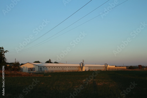A building with a field in front