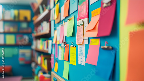 A bulletin board filled with back-to-school announcements and colorful sticky notes.