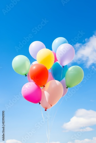A bunch of colorful balloons are floating in the sky