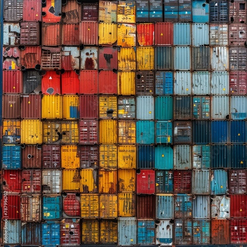 A bunch of colorful shipping containers stacked up in a haphazard fashion.