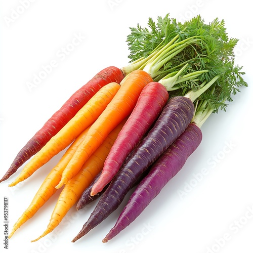 a bunch of multicolored carrots, heirloom varieties, vibrant and diverse, isolated on white background