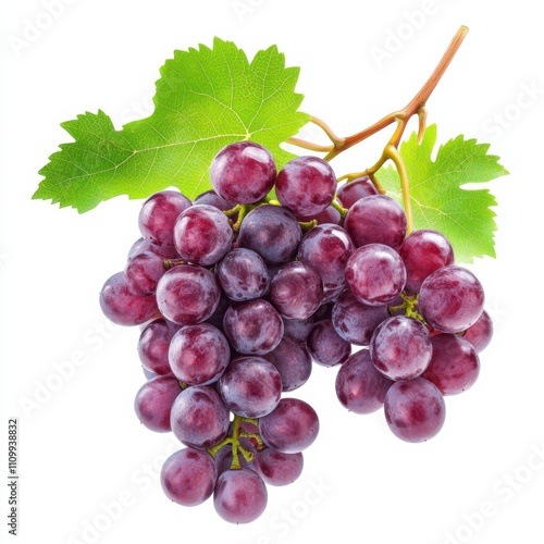 A bunch of ripe grapes with stems, isolated white background, impressionism art style