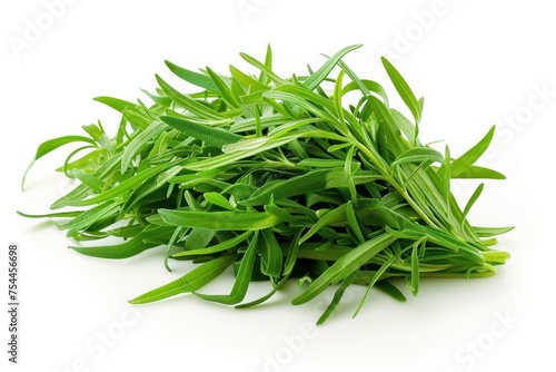 A bunch of tarragon are piled on top of each other. The herbs are fresh and green, and they look like they are ready to be used in a recipe