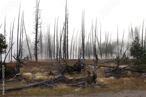 a burned out forest in Yellowstone National park, MT