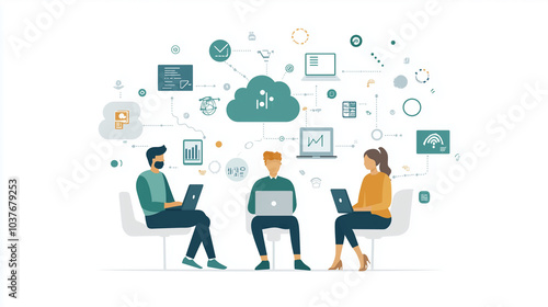 A Business Communication Themed Picture: Digitalization, Cybersecurity, Cloud Computing, Web Service, SAAS, IT