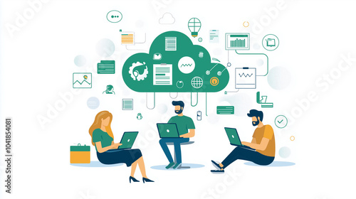 A Business Communication Themed Picture: Digitalization, Cybersecurity, Cloud Computing, Web Service, SAAS, IT