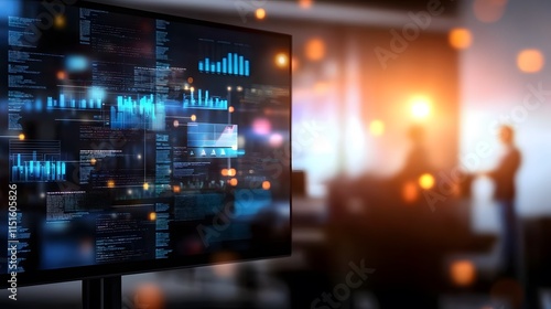 A business leader presenting a digital transformation roadmap on a large screen in a modern office