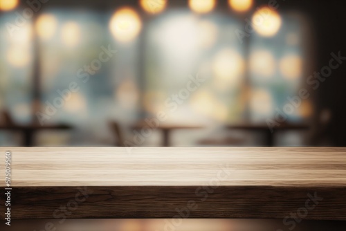 A Business Presentation Mockup Set in a Rustic Wood Table Restaurant with a Blurred Background. Generative AI