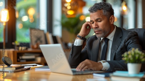 A Business Professional Focused on Laptop Work in Modern Office Setting During Daytime Hours