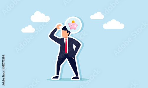 A businessman thinking about a piggy bank, illustration of the right investment strategy to secure assets