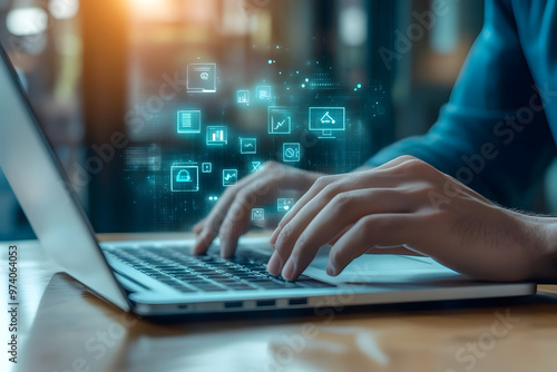 A businessman using a laptop for business growth