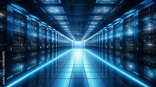 A bustling data center filled with rows upon rows of servers, their lights blinking in a mesmerizing rhythm.