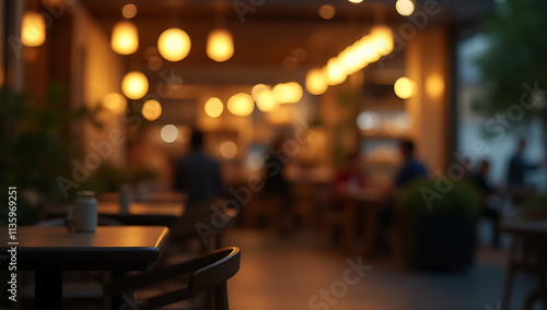 A café is blurred by soft golden lighting at night, its atmosphere tranquil and inviting to passersby._00014_