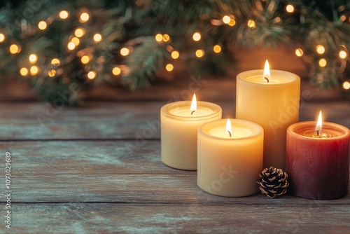 A Calming Holiday Scene featuring Softly Glowing Candles and Beautiful Pine Cones for a Cozy Atmosphere