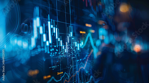 A candle-shaped graph shows the rise and fall of stock prices over time. The blue background represents the current stability, while the candle's shape indicates potential for growth.