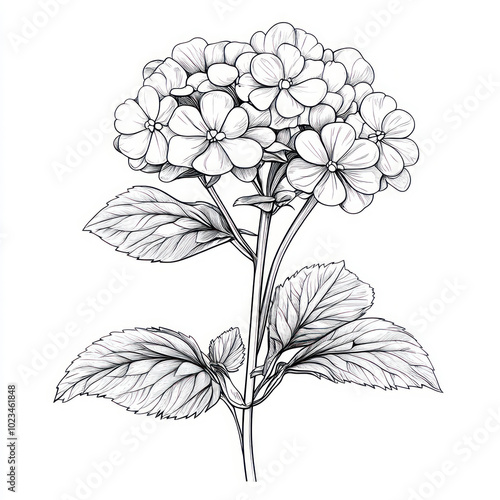 A Candytuft, line pattern, black and white artwork style. Coloring book, zoom out, isolated on solid white background