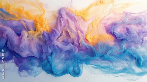 A captivating abstract art piece of flowing, vibrant mist captured in high resolution, rich and dynamic color transitions of golden yellow