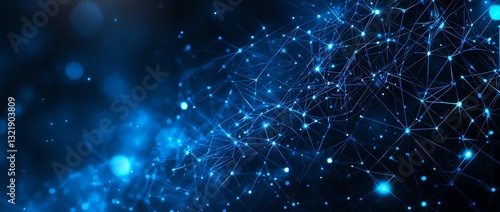 A captivating abstract representation of interconnected blue lines and glowing nodes, illustrating futuristic technology and digital networks in a striking visual form.