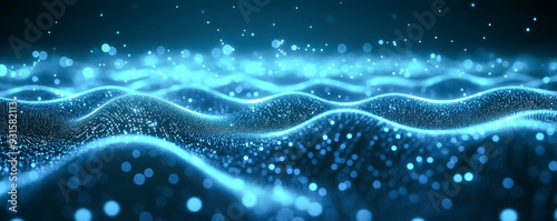 A captivating abstract view of shimmering waves featuring vibrant blue tones and sparkling particles, evoking a sense of tranquility.
