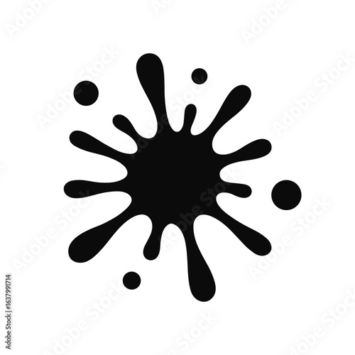 A captivating black ink blot, an artistic splash and splatter, perfect for creative design projects. The symmetrical splash showcases the beauty of imperfection.