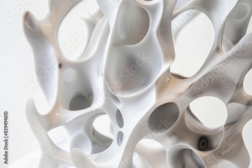 A captivating blend of smooth curves and sharp angles in a close-up view of a Midjourney AI Art sculpture on a clear white background.