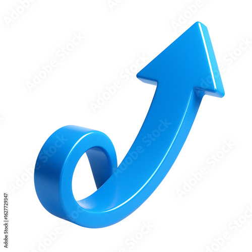 A Captivating Blue Arrow Ascending with a Unique Twist Representing Growth Advancement and Success on a Transparent Backdrop